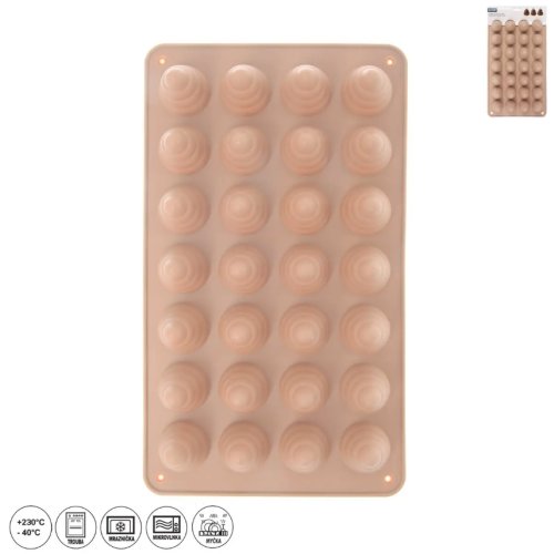 Praktická silikónová forma na prípravu tradičných nepečených úľkov (včelích úľov) pripraví nepečené cukrovinky z rôznych druhov ciest. Forma obsahuje 28 tvarov a vďaka pružnému a nepriľnavému materiálu je možné hotové úľky ľahko vybrať bez poškodenia tvaru. Súčasťou balenia je aj recept, ktorý vám uľahčí prípravu. Na vytvorenie jamky v strede úľa odporúčame použiť drevený tŕň z našej ponuky, ktorý zaistí ideálny tvar pre náplň. Materiál silikón znáša teplotu -40 °C až +230 °C. Jednoduchá údržba. Vhodná do umývačky riadu, mrazničky, rúry a MVT. Rozmery 32 x 18 x 4.5 cm, priemer úľa 3.2 cm. Farba béžová alebo hnedá podľa skladovej dostupnosti. EAN 8592381262907
