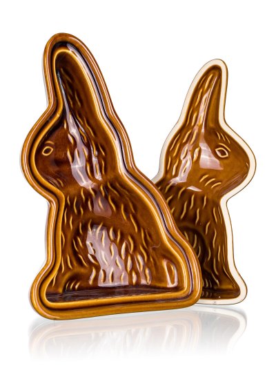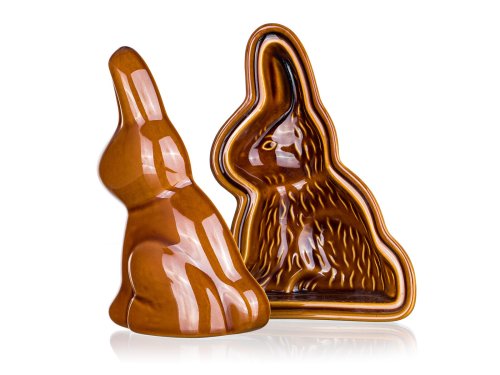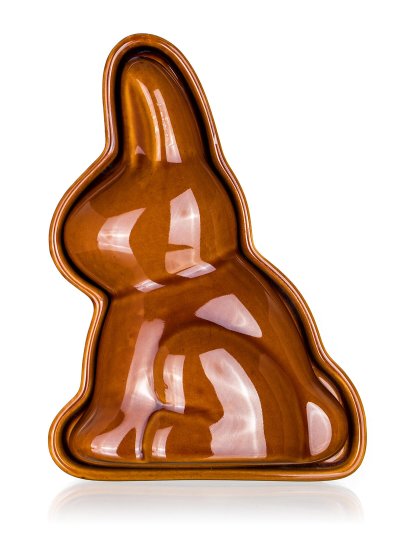 Keramická forma na pečenie - zajačik, sa skladá z 2 častí, povrch má hnedú glazúru. Nie je vhodné do umývačky riadu. V rúre piecť max. do 250 st. C. Keramika patrí medzi obľúbené materiály overené mnohými generáciami. Cez širokú ponuku foriem na pečenie z moderných materiálov patrí stále medzi najžiadanejšie. Keramické formy najprv absorbujú teplo a postupne ho uvoľňujú, tým sa múčniky dobre prepečú.
