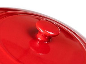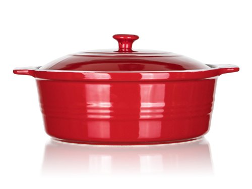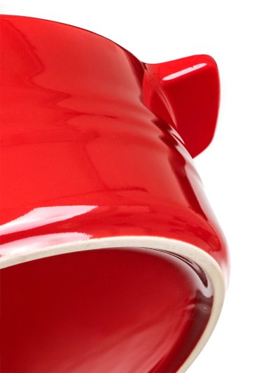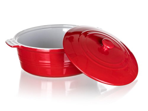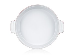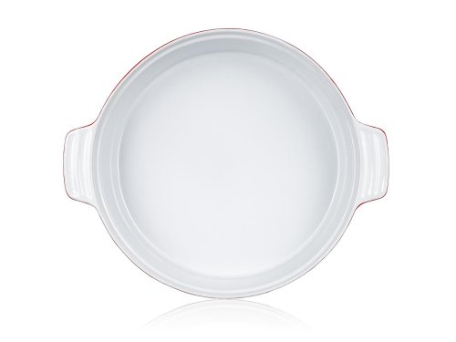 Keramická okrúhla zapekacia forma s vekom 31,5 x 26,5 cm CULINARIA Red s praktickými držadlami pre jednoduchú manipuláciu, výška 14,5 cm. Vonkajšia strana červená + vnútorná strana biela glazúra. Keramické formy rovnomerne absorbujú teplo a postupne ho uvoľňujú, vďaka čomu sa pokrmy dobre prepečú. Nie je vhodné na použitie na platni sporáka.
