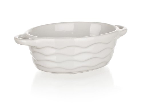 Oválna zapekacia forma CULINARIA White. Keramická oválna zapekacia forma CULINARIA White s praktickými držadlami pre jednoduchú manipuláciu. Vonkajšia strana formy má vlnkový reliéf. Keramické formy rovnomerne absorbujú teplo a postupne ho uvoľňujú, vďaka čomu sa pokrmy dobre prepečú.