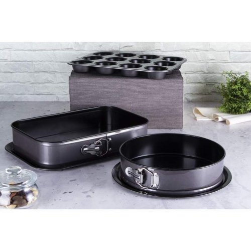 - sada foriem na pečenie do rúry s titánovým povrchom - celkom 3 kusy rôznych foriem na pečenie vrátane odnímateľných tácok - forma na muffiny 12 muffinov 35 x 26,5 x 3 cm - guľatá forma na pečenie na tortu 26 x 7 …
