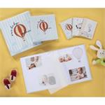 Album ďalej obsahuje popisové štítky s pomocnými linkami na zaznamenanie príbehov, poznámok, súvislostí či iných dôležitých informácií ku konkrétnej fotografii. Vďaka tomu si vaše dieťa ľahko opráši svoju pamäť aj po dlhých rokoch, keď pri spätnom prezeraní v dospelosti zažije skutočnú nostalgiu. Na predných tvrdých doskách z polaminovaného papiera sa potom nachádza kreslený motív s červeno-bielym teplovzdušným balónom na prúžkovanom modro-bielom podklade doplnený o nápis „Our Baby is Here“ , čo možno preložiť ako „Naše dieťa je tu“, takže je tento album vhodný najmä pre fotografie novorodencov a batoliat.