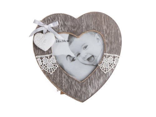 Rámček s čipkou LACEWORK o rozmere 15 x 15 x 2 cm na fotografii o veľkosti 10 x 10 cm,, tvar srdca je vhodný na dekorovanie bytu. Ozdobné rámčeky na fotky vytvárajú atmosféru útulného domova.
