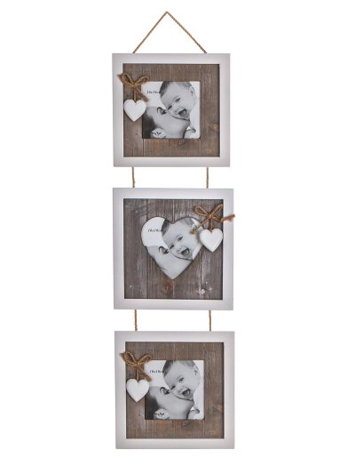 Sada rámčekov SOLID HEART, na 3 fotky je praktický pomocník na umiestnenie a vystavenie fotografií. Ozdobné rámčeky na fotky vytvárajú atmosféru útulného domova.