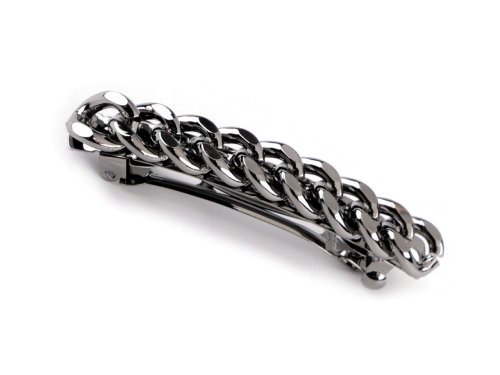 Francúzska spona ozdobená reťazou má veľmi kvalitné celokovové prevedenie. Je lesklá, čo z nej robí perfektnú voľbu pre slávnostné príležitosti aj každodenné nosenie. Vášmu účesu dodá nevšedný nádych a originalitu. Zacvakávací mechanizmus zapínania je pevný a spoľahlivý, spona udrží vaše vlasy dokonale na svojom mieste po celý deň. Dĺžka časti pre vlasy je 5 cm.