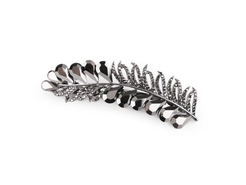 Francúzska spona v tvare pierka luxusne ozdobí slávnostný účes. Povrch je ozdobený brúsenými kamienkami, ktoré sa trblietajú a zachytávajú svetlo z rôznych uhlov, čo pridáva spone na atraktivite. Dizajn s jemnými detailmi pôsobí prirodzene a elegantne. Či už máte jemné pramene alebo husté kučery, touto sponou ľahko zopnete vlasy do vrkoča alebo vytvoríte elegantný drdol, ktorý bude vyzerať, ako keby ho vytvoril profesionál. Spona má veľmi kvalitné celokovové prevedenie. Zacvakávací mechanizmus je pevný. Dĺžka časti pre vlasy je 5 cm.