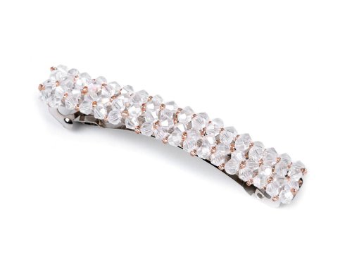 Francúzska spona s brúsenými korálkami luxusne ozdobí slávnostný účes. Má veľmi kvalitné celokovové prevedenie. Zacvakávací mechanizmus je pevný. Brúsené korálky sa oslnivo trblietajú, upútajú pozornosť už z diaľky. Dĺžka časti pre vlasy je 6 cm.