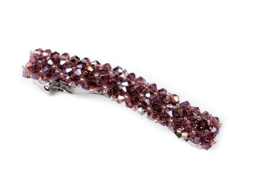 Francúzska spona s brúsenými korálkami luxusne ozdobí slávnostný účes. Má veľmi kvalitné celokovové prevedenie. Zacvakávací mechanizmus je pevný. Brúsené korálky sa oslnivo trblietajú, upútajú pozornosť už z diaľky. Dĺžka časti pre vlasy je 6 cm.