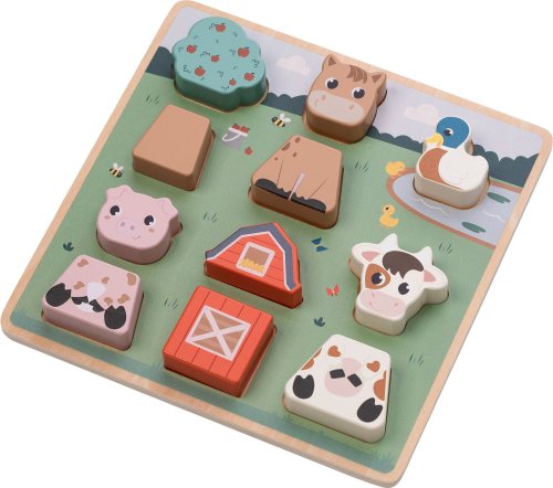 Drevená vkladačka pre najmenších na pevnej podkladovej doske. Táto očarujúca drevená hra podnieti detskú predstavivosť pri skladaní rôznych tvarov. Počas hry sa deti učia rozpoznávať farby a tvary a logicky umiestňovať dieliky na správne miesta. Vlastnosti: