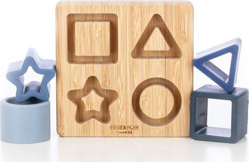 Drevená podložka so 4 silikónovými tvarmi pomáha rozvíjať motorické schopnosti dieťaťa. Vlastnosti: