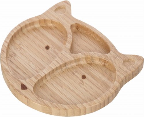 3 priehradky na rozdelenie jedla odnímateľná prísavka na spodnej strane - zabraňuje dieťaťu tanierik prevrhnúť 100% bambus potiahnutý netoxickým lakom, bez BPA, PVC, ftalátov a melamínu umývateľný v umývačke ľahké čistenie