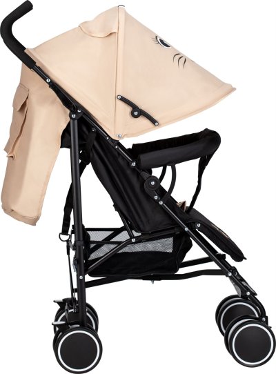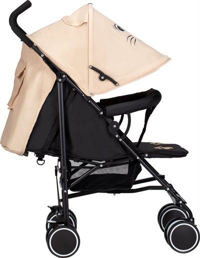 ľahký klasický rám ľahké a kompaktné skladanie dvojité kolesá brzdy na zadných kolesách 5 bodové bezpečnostné pásy s polstrovaním nastaviteľná opierka chrbta so sieťovinou nastaviteľná opierka nôh nastaviteľná veľká strieška s priehľadom vrecko na príslušenstvo detské madlo priestranný úložný kôš