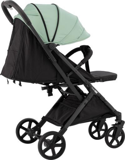 nastaviteľná strieška s priehľadom, nastaviteľná opierka chrbta so sieťovinou, nastaviteľná opierka nôh, 5bodové bezpečnostné pásy, úložný kôš s nosnosťou až 3 kg, brzda na zadných kolesách, všetky štyri kolesá sú odpružené, odnímateľné kolesá, odnímateľné bezpečnostné madlo, rukoväť kočíka z materiálu.