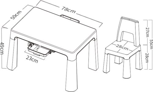 Plastový stolík so stoličkami Neo je ideálnou voľbou pre všetkých malých tvoriteľov, čitateľov i maliarov. Je vhodný do izbičky, herne, obývačky aj na záhradu. Vlastnosti: