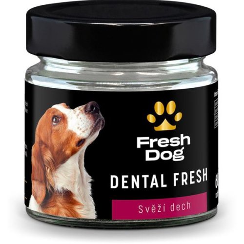 Vzhľadom na to, že psy sú šelmy, ktorých kŕmna dávka obsahuje vysoký podiel živočíšnych bielkovín, je vhodné im poskytnúť kŕmny doplnok Dental Fresh, ktorý pomáha dezinfikovať ústnu dutinu a čiastočne eliminuje nepríjemný zápach z papule. Podľa štatistík má viac ako 80% psov vo veku 20-27 mesiacov niektoré z príznakov ochorenia ďasien, ktoré môžu zapríčiniť až odmietanie príjmu potravy a vypadávanie zubov. Spirulina potláča zápach z papule a tlmí plynatosť. Ide o silný antioxidant, ktorý napomáha prevencii nádorových ochorení a výrazne sa podieľa na posilnení imunity. Pivovarské kvasinky majú vysoký obsah vitamínov a minerálov. Vhodné používanie pri: