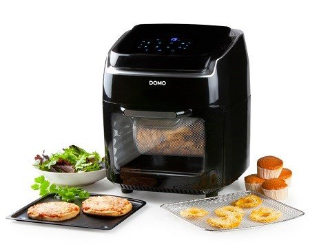 Kto vlastní fritézu, určite môže potvrdiť, že sa jedná o skvelého pomocníka do kuchyne. Pripravíte s ňou širokú škálu pokrmov. Teplovzdušná fritéza Domo DO534FR je zariadenie tzv. 3 v 1 , pretože ju môžete použiť ako teplovzdušnú rúru, fritézu alebo sušičku potravín . Vďaka tomu, že funguje na princípe horúceho vzduchu, budete využívať zdravé fritovanie. Ľahko a rýchlo pripravíte hranolky, ryby, huby, zeleninu. Na grilovacích mriežkach potom treba špízy, kura, plátky mäsa alebo grilovanú zeleninu.