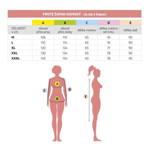 Froté župan dámsky materiál 100% Bavlna - Froté 330g/m2 pranie na 60 ° C žehliť do 150 ° C sušiť v sušičke na nízku teplotu zapínania na zips Župan je vyrobený z veľmi kvalitného froté materiálu zo 100% …