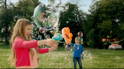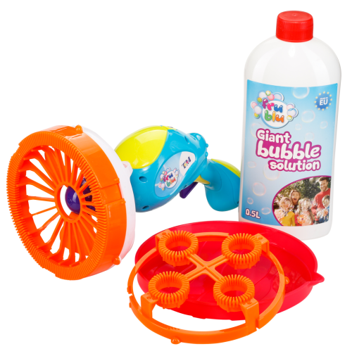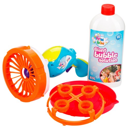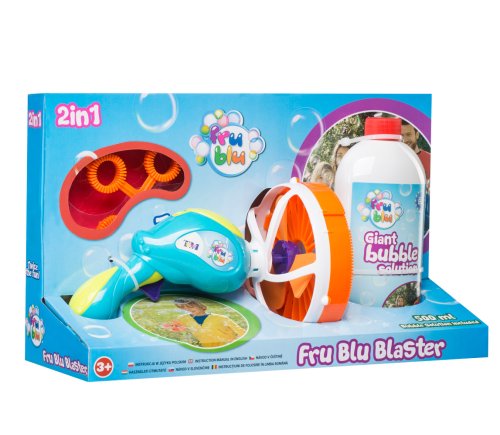 FRU BLU - BLASTER - pištoľ na mega bubliny s dvoma nástavcami na bubliny rôznej veľkosti a 0,5 l tekutiny