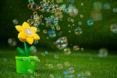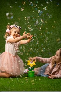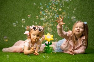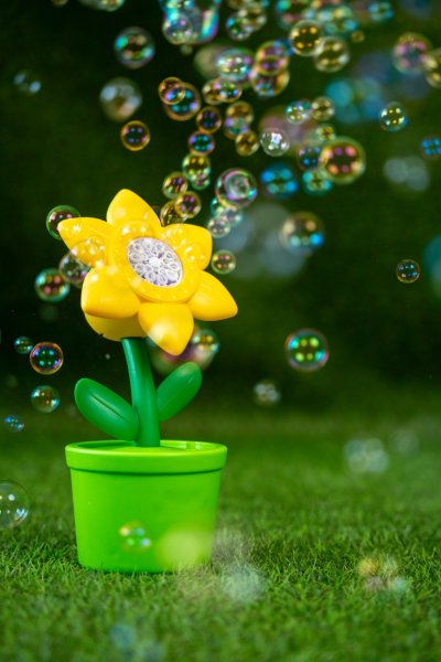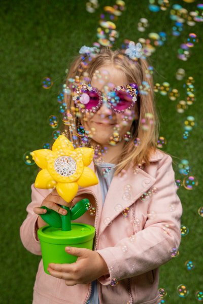 Bublinkový stroj v tvare kvety je ideálnou voľbou pre najmenších milovníkov mydlových bublín. Hračka povzbudzuje malé deti k fyzickej aktivite a pozýva ich k hre na chytanie bublín, ktoré poletujú vzduchom. Stroj behom chvíľky vytvorí oblak drobných bublín a poskytne deťom skvelú zábavu a príjemné spestrenie času stráveného vonku. Navyše je vybavený LED svetlom, vďaka ktorému vyzerajú bubliny pôsobivo aj po zotmení. Súprava obsahuje: 2 fľaštičky s roztokom na malé bubliny po 40 ml (celkom 80 ml), bublinkový stroj v tvare kvety. Je nutné použiť 3× AA batérie 1,5 V (batérie nie sú súčasťou balenia). Nevhodné pre deti do 3 rokov.