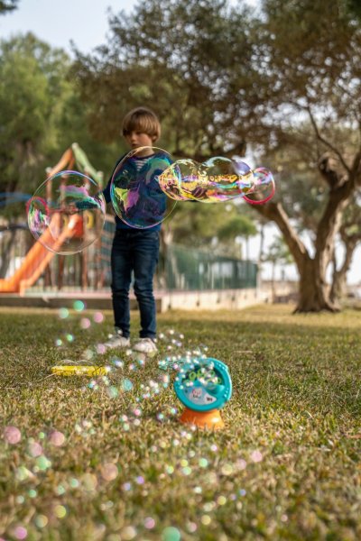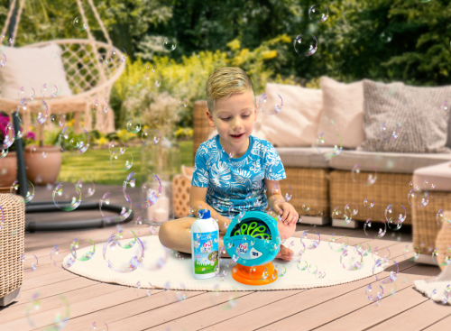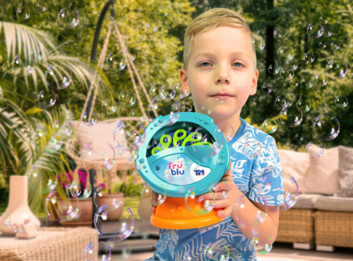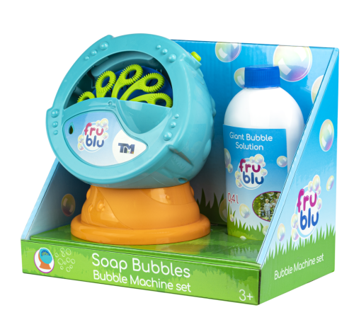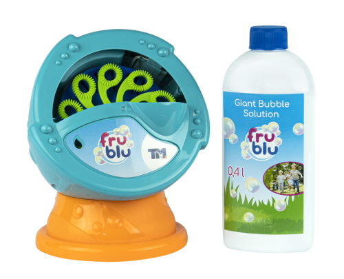 FRU BLU stroj na bubliny vytvára veľké množstvo bublín. Na spustenie stačí vložiť 4 x AA batérie (nie sú súčasťou balenia) a naliať FRU BLU náplň na bubliny. Potom stlačíte spínač a deti sa môžu tešiť na tisíce žiarivých bublín. V balení spolu s 0,5L náplne. Dbajte na umiestnenie na rovnom povrchu. Bubliny FRU BLU žiaria všetkými farby dúhy. Bubliny FRU BLU vznikajú vďaka špeciálnej tekutine, ktorá je produkovaná v EÚ. Sú trvanlivé a len tak neprasknú.