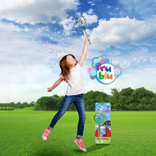 Sada obsahuje 2 obruče - 1 na výrobu veľkých bublín a jednu pre milióny malých bubliniek. V balení tiež nádoba na tekutinu a náplň 0,5l. Bubliny FRU BLU dosahujú obrovské rozmery a majú neskutočné tvary. September všetkými farby dúhy. Bubliny FRU BLU vznikajú vďaka špeciálnej tekutine, ktorá je produkovaná v EÚ. Sú trvanlivé a len tak neprasknú.