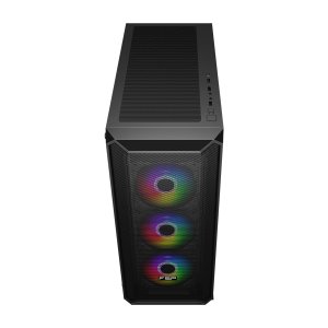 Parametre: *Výška skrine: 480mm *Dĺžka skrine: 470mm *Šírka skrine: 205mm *Materiál: SPCC (oceľ), sklo *Podpora základnej dosky: E-ATX, ATX, M-ATX, Mini-ITX *Farba: Čierna *Hmot 400 mm *Maximálna výška CPU chladiča: 160 mm *Maximálna PSU dĺžka: 200 mm * Veľkosť skrine: E-ATX Mid Tower * Case Power Supply: ATX * Rozširujúce sloty skrine: 7 +2 * Front IO skrine: 3,5“ pozícia pre disky: 2(zdieľané s SSD) *Interná 2,5“ pozícia pre disky: 2 *Ventilátory(predinštalované): Predná strana: 3× 120mm ventilátor s pevným RGB podsvietením Zadná strana: 1× 120mm ventilátor s pevným RGB podsvietením *Pod 120?mm alebo 3× 140?mm ventilátory alebo 360?mm radiátor Horná časť: až 3× 120?mm ventilátory alebo 360?mm radiátor Spodná strana: 3× 120mm alebo 1× 360mm radiátor Zadná časť: 1× 120?mm ventilátor *maximálna veľkosť radiátora Support: Nie