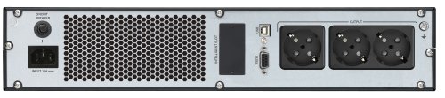 VÝSTUP Kapacita výstupného výkonu [W]: 900 Kapacita výstupného výkonu [VA]: 1000 Topológia: Online s dvojitou konverziou Typ krivky: Čistá sínusoida Výstupné prípojky: 3x Schuko