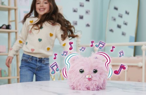 Roztomilé Mačiatko, ktoré sa pomocou hry odhalí z plyšovej chlpatej guličky o veľkosti cca 20 cm. Máš veľa možností interaktívnej zábavy ako hádzanie, guľenie, kŕmenie, pesničky a hry. FurrFluffs má viac ako 50 zvukov a reakcií. Hračka je určená pre deti od 5 rokov