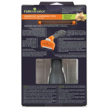 Vyčesávacie hrablo FURminator pre krátkosrsté psy stredných plemien. Vyčesávacia hrana z nerezovej ocele preniká hlboko do srsti zvieraťa, kde šetrne a ľahko odstraňuje uvoľnené chlpy z podsady bez toho, aby poranila kožu alebo poškodila srsť.
