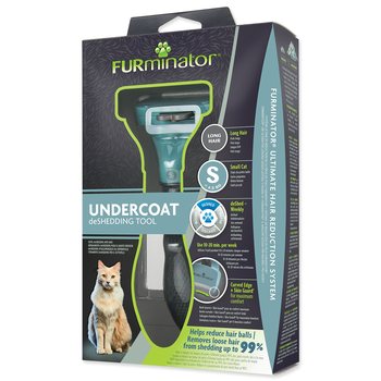 Vyčesávacie hrablo FURminator pre dlhosrsté mačky malých plemien. Pomáha tiež redukovať tvorbu chlpových bezoárov.