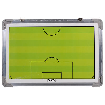 Trénerská tabuľa na futbal je nevyhnutný doplnok každého futbalového trénera naprieč všetkými súťažami. Taktická futbalová tabuľa Merco FUTBAL 40 je obojstranná magnetická doska s farebným prevedením polovice z jednej strany az druhej strany celého futbalového ihriska v hliníkovom ráme. Súčasťou futbalovej tabule Merco FUTBAL 40 je 28 magnetov (s motívmi čísel, lopty a rozhodcov), dva popisovače a stieracia hubka. Závesná trénerská tabuľa Merco FUTBAL 40 je ideálny pomocník pre taktické porady vo futbalovej šatni.