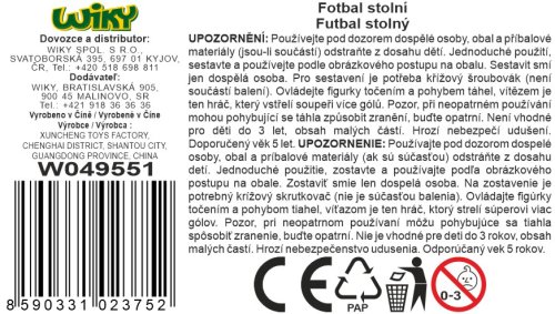 Futbal stolný. Rozmery stola 69x36,5x23 cm. Obsah balenia - stôl a 2 loptičky. Návod na zostavenie stola sa nachádza na obale. Krížový skrutkovač je nutný na zostavenie (nie je súčasťou balenia).