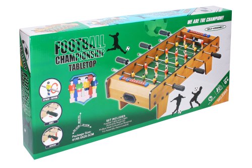 Žiadny byt nie je dosť malý na stolný futbal. Užite si hodiny zábavy s naším mini stolným futbalom! Báječný darček pre každého. Mini stolný futbal je možné využiť všade - doma, v kancelárii, môžete ho vziať so sebou aj na dovolenku! Možnosti sú nekonečné. Vzhľadom k jeho kompaktným rozmerom je možné futbal ľahko skladovať a vždy je pripravený k báječnej hre. Maximálna zábava pre mladých aj starších. Rozmery 60,5x30,5x18,5 cm. materiál: drevo Odporúčaný vek: 6+
