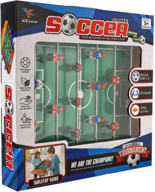 Stolný futbal, klasická spoločenská hra, prináša zábavu pre celú rodinu. Hra je navrhnutá pre dvoch hráčov, ktorí ovládajú svoje tímy pomocou páčok a snažia sa streliť gól súperovi. Skvelý spôsob, ako zažiť napínavé futbalové zápasy v pohodlí domova. Rozmer balenia: 37 x 34,5 x 6 cm Vhodné pre deti od 5 rokov