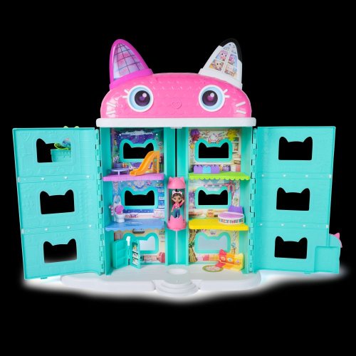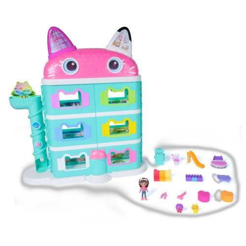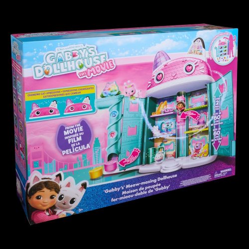 Prineste si domov kúzlo filmu Gábinin kúzelný domček! Tento úžasný domček pre bábiky meria cez 60 cm na výšku a má lentikulárne oči, ktoré pridávajú na napínavom hraní! Užite si plnohodnotnú 360 ° hru v 7 miestnostiach a herných zónach s mačacou tematikou. Objavujte domček pomocou mačacieho výťahu a posielajte zásielky doručovacou vežou! Táto sada domčeka pre bábiky obsahuje 9cm figúrku Gábiny oblečenú rovnako ako vo filme Gábinin kúzelný domček, vrátane jej charakteristickej čelenky s mačacími ušami – ideálna pre úžasné objavovanie s týmito vzdelávacími hračkami. Rozbaľte doručený balíček z domčeka rovnako ako Gábina a objavte doplnky k domčeku pre bábiky – potom naskenujte QR kód a odomknite bonus v aplikácii Gábinin kúzelný domček. Táto sada je skvelým spôsobom, ako podnietiť predstavivosť a vyzvať deti k mňau-úžasným objavom s týmito roztomilými mačacími hračkami zo sveta Gábiny. Hračky z Gábininho kúzelného domčeka sú ako stvorené pre deti, ktoré si chcú znovu prežiť obľúbené chvíle z filmu o Gábine, alebo si vytvárať nové dobrodružstvá v jej kúzelnom domčeku. Nájdete tu hračky pre najmenších – od doplnkov do domčeka a nábytku až po jej mňau-skvelých mačacích kamarátov a úžasné morské víly. Každá hračka (predávaná samostatne) ponúka hodiny a hodiny úžasnej zábavy
