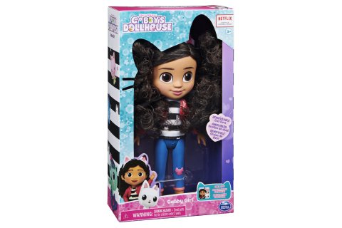 Gabby česacia paneka je 20 cm veľká. Má oblečenie zo seriálu a čelenku s mačacími ušami. Čelenku môžeš zložiť a potom učeať Gábince hebké a vlnité vlasy. Vhodné od 3 rokov.