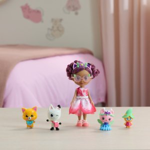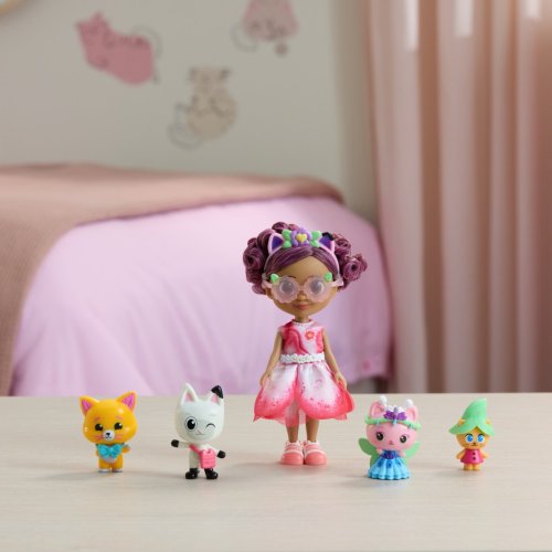 Vstúpte do sveta Gábininho kúzelného domčeka vo filme s filmovou sadou figúrok Kráľovnej Víly Mačičky a Mačacieho škriatka! Obe figúrky merajú cez 5 cm a majú veselé doplnky, ako je pripevniteľná drahokamová korunka s popínavým lístkovím pre Kráľovnú Vílu Mačičku a listová čiapka pre Mačacieho škriatka. Tieto roztomilé mačacie hračky pozývajú k mňau-úžasnému objavovaniu a podporujú hravé učenie. Táto sada je skvelým spôsobom, ako podnietiť predstavivosť a vyzvať deti k mňau-úžasným objavom s týmito roztomilými mačacími hračkami zo sveta Gábiny. Hračky z Gábininho kúzelného domčeka sú ako stvorené pre deti, ktoré si chcú znovu prežiť obľúbené chvíle z filmu o Gábine, alebo si vytvárať nové dobrodružstvá v jej kúzelnom domčeku. Nájdete tu hračky pre najmenších – od doplnkov do domčeka a nábytku až po jej mňau-skvelých mačacích kamarátov a úžasné morské víly. Každá hračka (predávaná sa samostatne) ponúka hodiny a hodiny úžasnej zábavy
