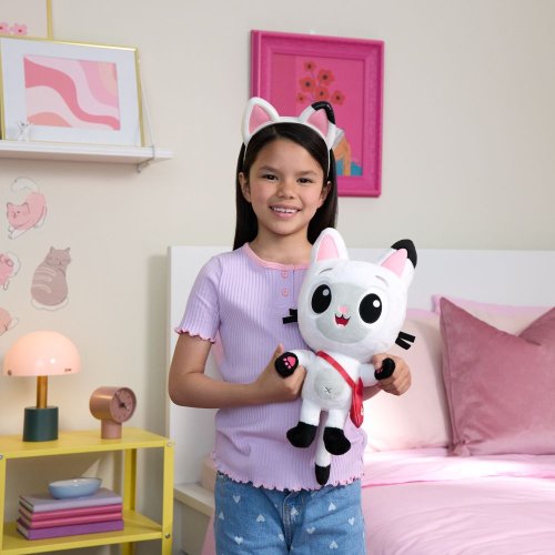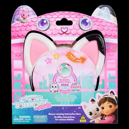 Úžasné dobrodružstvá začínajú s interaktívnou čelenkou - Gábininými úžasnými mačacími uškami! Táto 16,5 cm vysoká čelenka vyzerá presne ako Gábinina ikonické ušká a je ako stvorená na vstup do jej kúzelného sveta. Čelenka má viac ako 20 zvukových efektov, svetiel a zvukov aktivovaných pohybom a inšpiruje k nekonečnému hraniu. Deti môžu stlačiť ľavé alebo pravé uško a prepínať medzi troma zábavnými režimami: Tanečná párty, režim Gábiny a Mačacie režim. Interaktívne ušká Gábiny navyše obsahujú technológiu Meow Tech – špeciálnu funkciu, ktorá umožňuje prepojenie s interaktívnym domčekom a interaktívnou plyšovou Pandou Ťapkou pre ešte úžasnejšiu prepojenú hru! Či už ide o narodeniny, Vianoce alebo len kúzelnú hru na postavy z filmu, táto čelenka je skvelým spôsobom, ako deti podporiť v tvorivej hre a vtiahnuť ich do úžasného sveta Gábininho kúzelného domčeka s týmito roztomilými hračkami. Hračky z Gábininho kúzelného domčeka sú ako stvorené pre deti, ktoré si chcú znovu prežiť obľúbené chvíle z filmu o Gábine, alebo si vytvárať nové dobrodružstvá v jej kúzelnom domčeku. Nájdete tu hračky pre najmenších – od doplnkov do domčeka a nábytku až po jej mňau-skvelých mačacích kamarátov a úžasné morské víly. Každá hračka (predávaná samostatne) ponúka hodiny a hodiny úžasnej zábavy