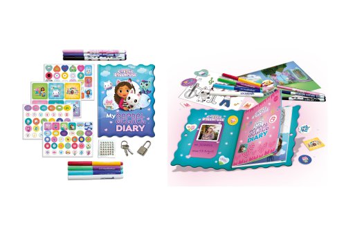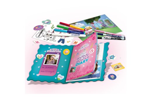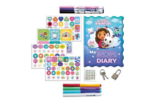 Gábinin kúzelný domček Tajný denníček. Tajný denníček na zámok, s dekoráciami a kresliacimi potrebami. Obsah balenia - denníček, zámok a kľúč, samolepky, farebné fixky s vôňou, perá meniace farbu, dekoratívne kamienky, návod.