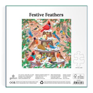 Užite si kúzelnú zimnú atmosféru s puzzle Zimné vtáky od značky Galison. Táto nádherne ilustrovaná skladačka s 500 dielikmi zachytáva pestrú skupinu zimných vtákov posedávajúcich okolo zasneženého kŕmidla obklopeného šiškami, vetvičkami a sviatočnou výzdobou. Ilustrácia je doplnená o metalické fóliové detaily, ktoré dodávajú puzzle luxusný vzhľad a jemne sa trblietajú pri dopade svetla. Vďaka tomu je skladanie ešte príjemnejšie a výsledný obrázok pôsobí ako dekoratívne zimné ilustrácie. Puzzle je ideálna pre zimné večery, rodinné chvíle alebo relaxáciu pri skladaní. Po dokončení môže slúžiť aj ako krásna sezónna dekorácia. Dieliky sú pevné a odolné a presne do seba zapadnú. Puzzle je vyrobené zodpovedne za použitia vysokého podielu recyklovaného materiálu (90% puzzle a 70% obal) s certifikáciou FSC® a je potlačené netoxickými farbami. Hlavné vlastnosti: 500 dielikovzimné ilustrácie s farebnými vtákmi a sviatočnou scénoumetalické fóliové detaily (foil) pre luxusný vzhľadkvalitná tlač s bohatými farbamivyrobené s použitím recyklovaných a udržateľne získaných materiálov s certifikáciou FSC®potlačené netoxickými farbamiideálne pre relaxáciu, rodinné večery alebo zimné certifikát FSC® (Forest Stewardship Council) zaručuje, že drevo, z ktorého bol produkt vyrobený, nebolo vyťažené nelegálne a pochádza z lesov obhospodarovaných šetrným či prírode blízkym spôsobom, v ktorom sú dodržiavané prísne environmentálne a sociálne požiadavky. Značka FSC® na výrobku znamená, že svojim nákupom pomáhate chrániť lesy a podporujete šetrné, zodpovedné či prírode blízke hospodárenie, vďaka ktorému sú naše lesy stabilnejšie, zdravšie, majú prirodzenú druhovú skladbu a lepšie odolávajú negatívnym následkom klimatických zmien.