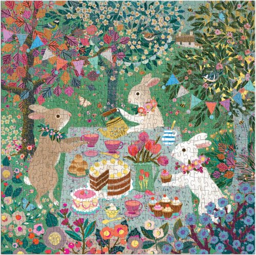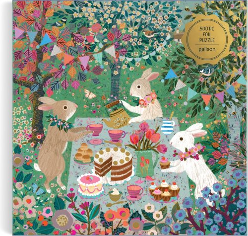GALISON Metalické štvorcové puzzle Jarný čajový večierok 500 dielikov