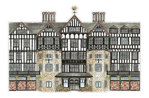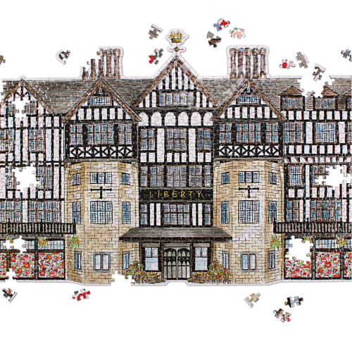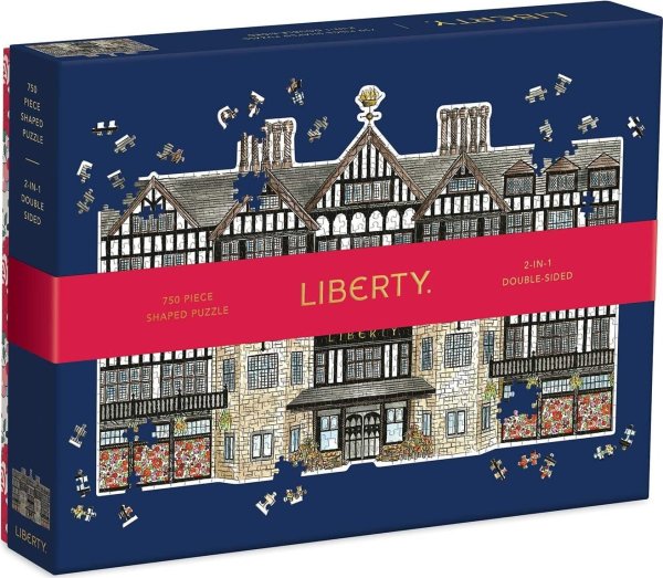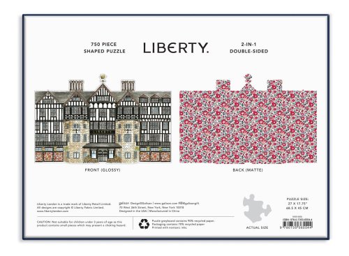 Tvarované puzzle Liberty London Tudor Building 750 dielikov od Galison má na jednej strane charakteristickú budovu Tudor a na druhej strane kvetinový vzor. Dizajnové puzzle so slávnymi umeleckými dielami dizajnéra Liberty Londona.