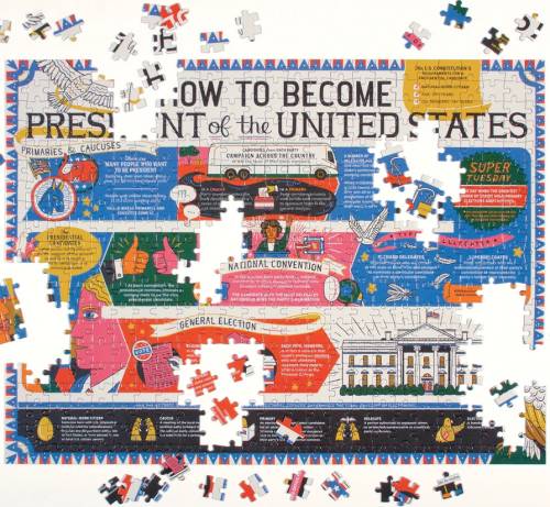 Dvojnásobná porcia! Obojstranné puzzle Vás zoznámi s cestou do prezidenstského úradu od primárok až k voľbám.