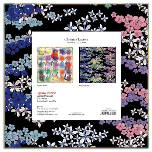 Obojstranné 500-dielne puzzle Photocall obsahuje haute couture módne skice a hviezdne výbuchy na jednej strane skladačky a ilustrovaný kvetinový a čierny dizajn na druhej strane. Dizajn Christiana Lacroixa oslavuje francúzske kultúrne dedičstvo a je naozaj unikátny. Skladačka je spolu s návodným obrázkom balená v originálnej lesklej krabici. Hlavné vlastnosti: ilustrácie Christian Lacroix500 obojstranných dielikov rozvíja logické myslenie a motorikuje jedinečný a ikonický dizajn