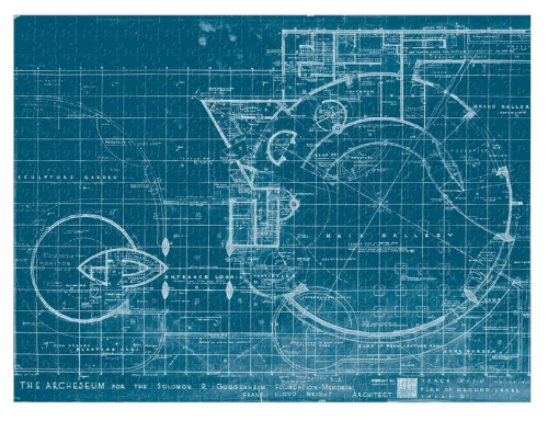 Tieto puzzle majú z jednej strany motív múzea Guggenheim az tej druhej motív stavebného plánu tejto budovy. Dieliky majú na vrchnej strane lesklý finiš a na tej spodnej matný finiš, vďaka tomuto je pri skladaní jednoduchšie od seba rozoznať jednotlivé motívy. Rozmer zloženého puzzle cca 61 x 46 cm