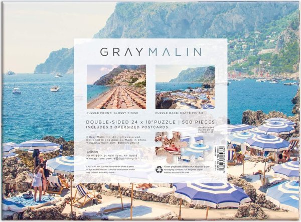 Letecká fotografia Gray Malina vzbudzujúca úctu, sú vytvorené z helikoptéry a vytvára ohromujúci vizuálny obraz plný farieb. Toto obojstranné 500 dielkové puzzle ponúka fotogie krásnej talianskej pláže, ktorá zachytáva podstatu letnej blaženosti. Dizajn Gray Malin. Hlavné vlastnosti: Obsahuje 500 obojstranných dielikovDielky sú rozlíšené lesklou a matnou povrchovou úpravouPotlačené netoxickými atramentmiPrémiová kvalita puzzleJednotlivé dieliky do seba presne pasujúRozvíja logické myslenie a motoriku