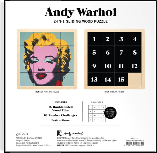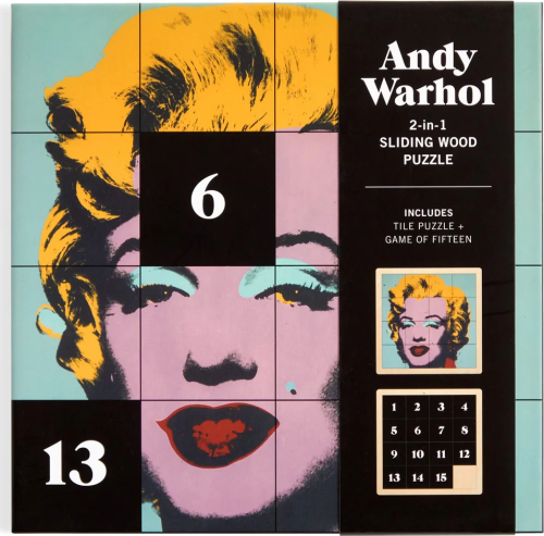 Posuvné drevené puzzle Andy Warhol: Marilyn je puzzle s obrazom Andyho Warhola a hrou – Hra o pätnásť. Strana s motívom: