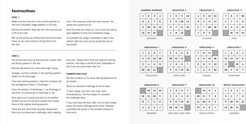 Otočte všetky dieliky puzzle číslom hore a odstráňte 16. dielik. Hráč posúva dieliky (bez toho, aby ich zdvíhal) po podkladovej doske tak, aby dieliky zložil podľa zadania v priloženom návode. Obtiažnosť si hráč volí sám alebo podľa návodu. Predvolená pozícia je vždy rovnaká. Dieliky môže hráč zdvihnúť iba vtedy, keď sa zasekol a chce sa vrátiť späť na východiskovú pozíciu.
