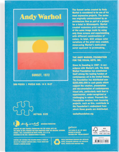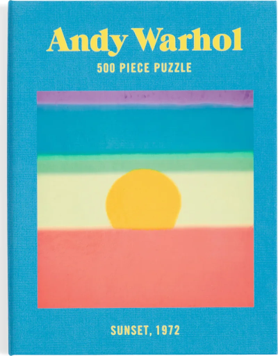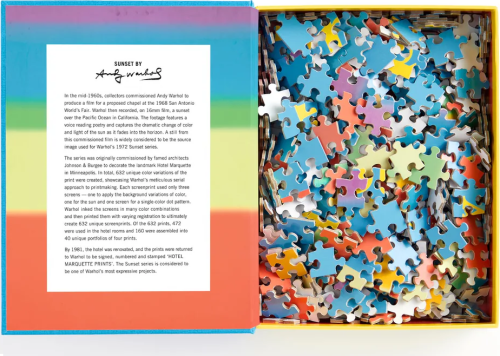 Puzzle Andy Warhol: Západ slnka v obale v tvare knihy je obmenou klasického 500 dielneho puzzle.