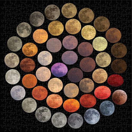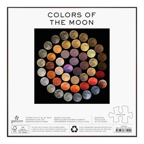 Preskúmajte pri skladaní puzzle širokú paletu magických farieb Mesiaca v splne. Bežnejšiu červenú, alebo žltú farbu máva Mesiac blízko obzoru. Zriedkavé modré sfarbenie je potom spravidla spôsobené prachovými časticami v atmosfére. Snímky sú dielom astrofotografky Marcelly Julie Paceovej a vznikali na rôznych miestach jej rodné Taliansko v priebehu desiatich rokov. Puzzle Galison sú vyrobené za použitia významného podielu recyklovaného papiera a ponúkajú špičkovú potlač nezávadnými farbami. Sú opatrené matnou povrchovou úpravou, ktorá zaisťuje za všetkých okolností verné podanie detailov i farieb. Ich zadná strana je potiahnutá hladkým, na dotyk príjemným povrchom, vďaka ktorému sa pri skladovaní rozloženého puzzle netvorí prach. Spolu so starostlivo zabalenými dielikmi nájdete v balení aj letáčik s návodným obrázkom, ktorý spravidla obsahuje ďalšie informácie o tvorcoch a pozadí vzniku diela. Dodávané v mimoriadne pevnej a pútavo spracovanej kartónovej krabičke vyrobenej z recyklovaného kartónu a udržateľne získaných materiálov s certifikáciou FSC®. Hlavné vlastnosti: 1000 precízne vyrezaných dielikovvyrobených s použitím recyklovaných a udržateľne získaných materiálovstarostlivo vybraný motív od renomovaných tvorcov a umelcovpotlač a prevedenie najvyššej kvalityobsahuje návodný obrázok